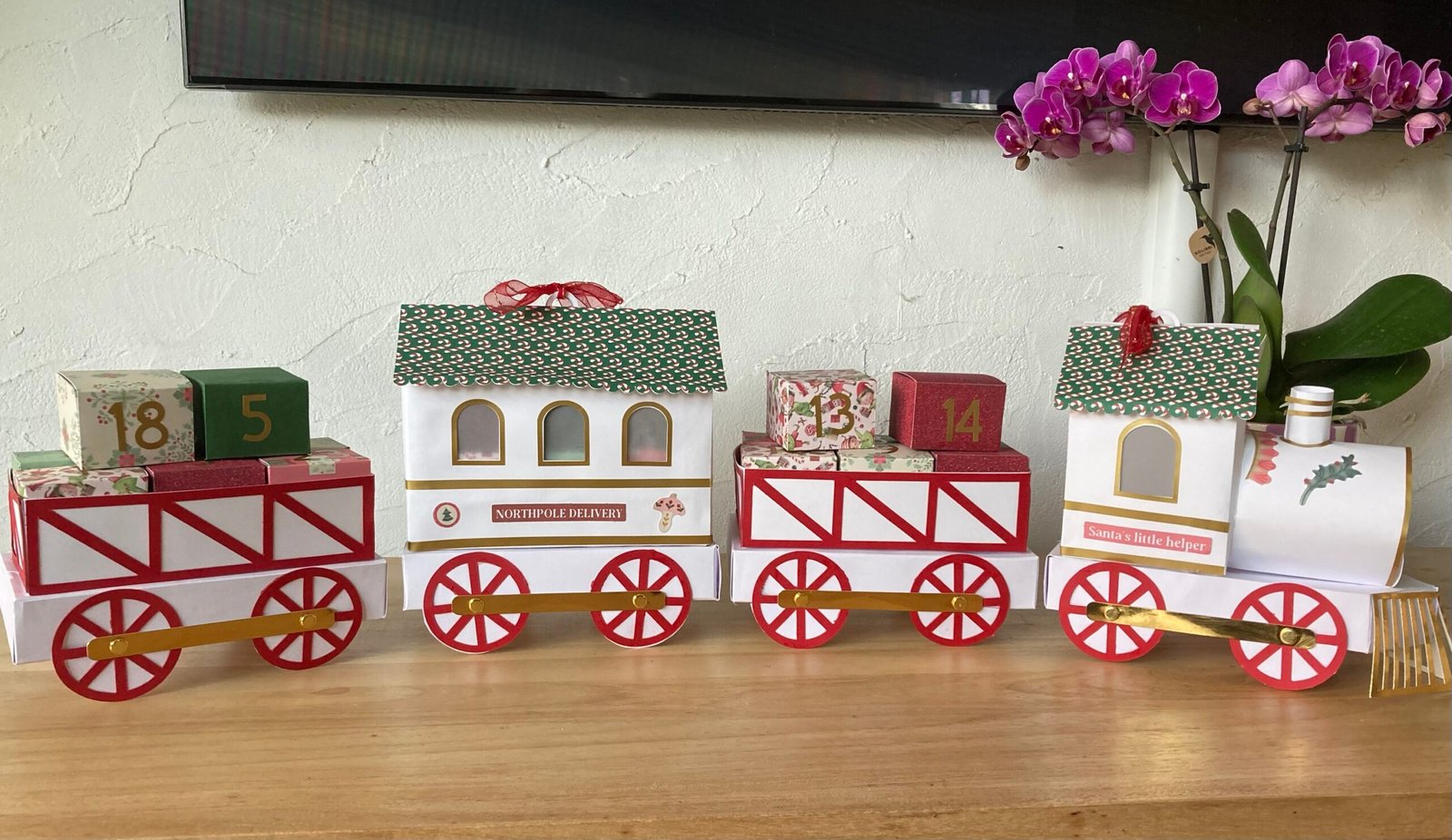 Ce petit train est composé de 24 petites boites que vous pouvez garnir avec de petites surprises.